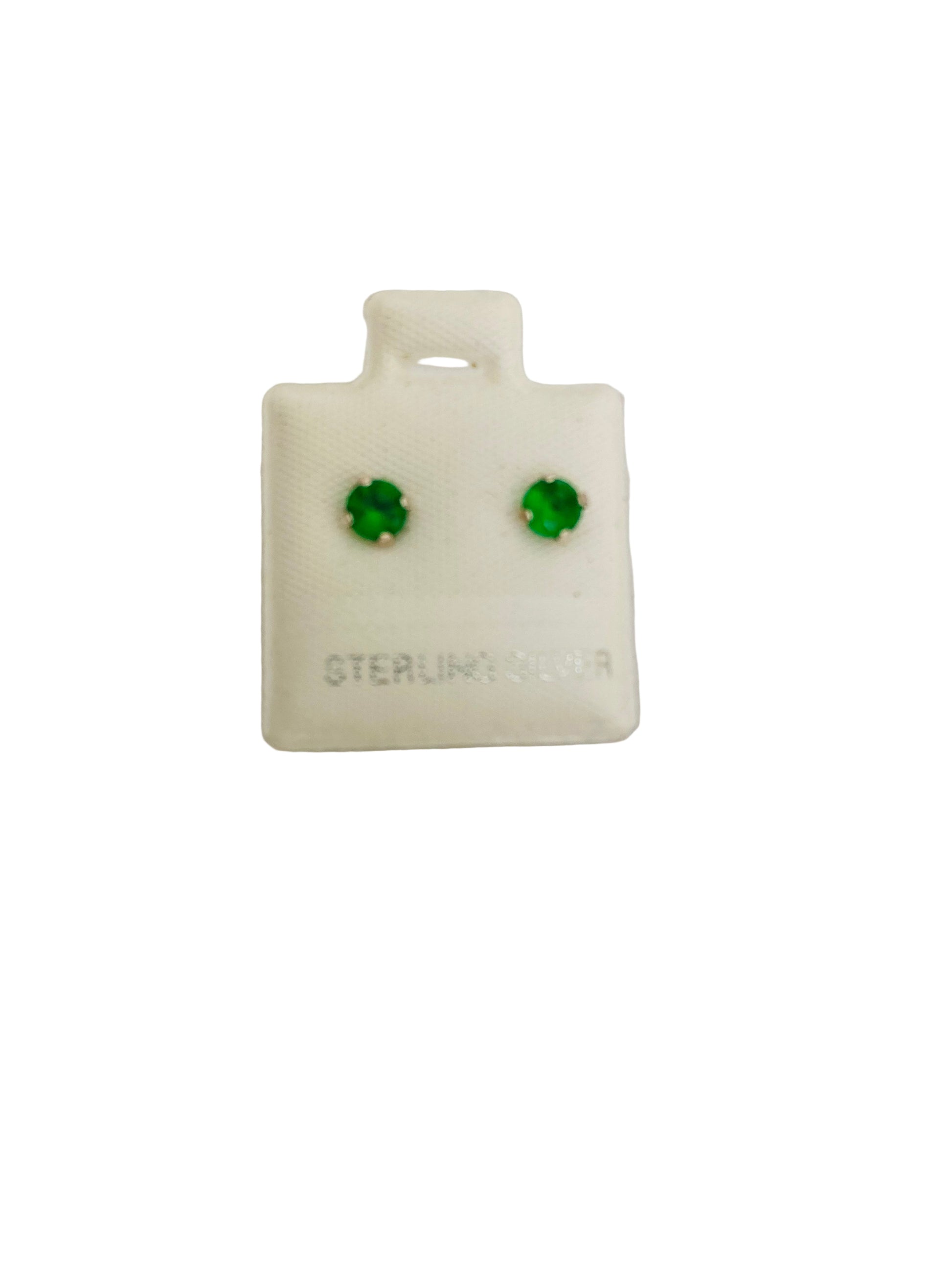 Broqueles Plata 925 con cristal verde, broquel con mariposa.